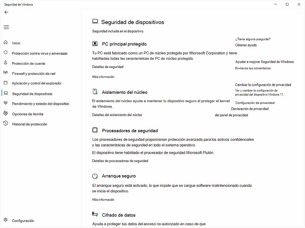 En la aplicación Seguridad de Windows del equipo, selecciona Seguridad del dispositivo o usa el siguiente método abreviado: